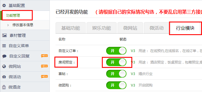 使用微酒店可进行酒店管理功能,设置酒店添加、房间信息,并支持在线预约房间,创造销售机会,也方便商户管理。